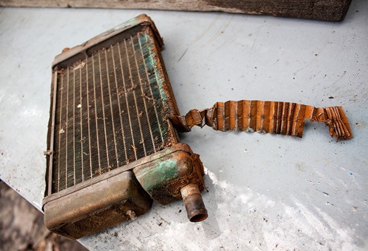 | Heater dismantle. The heater when turned on made some horrible noises and sounded strained. I pulled it out and it was filled with a rats nest, they had used some stuffing as the nest and packed it in nice and homely, the fan motor looked dodgy and wouldn’t spin freehand, I dismantled that,,,cleaned out the crap, lubed it up and whoo ee!,, she spins like a top quiet as a mouse with heaps of blow. – but the heater core is totally rooted – rusted and falling apart…